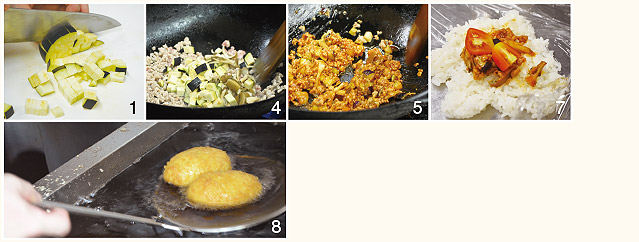 1.ナスはサイコロ状に切る。